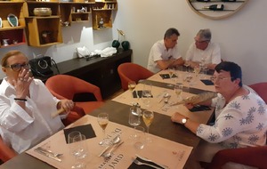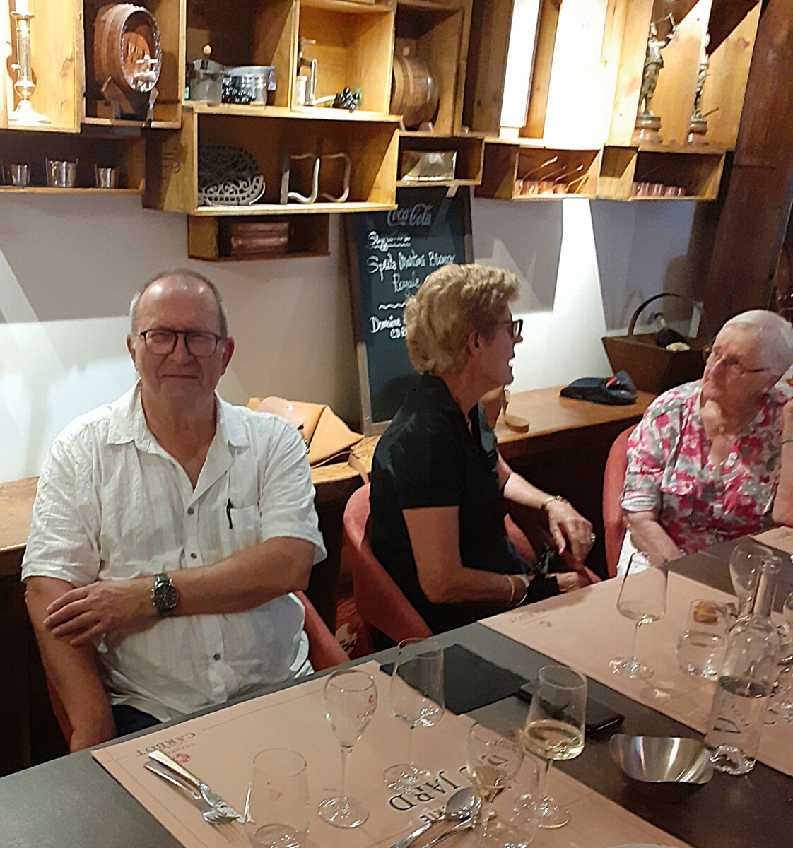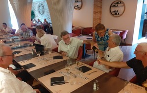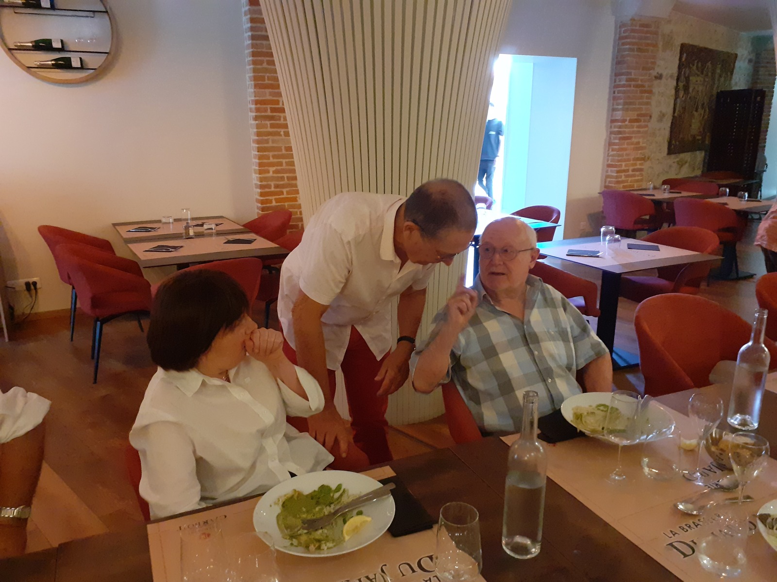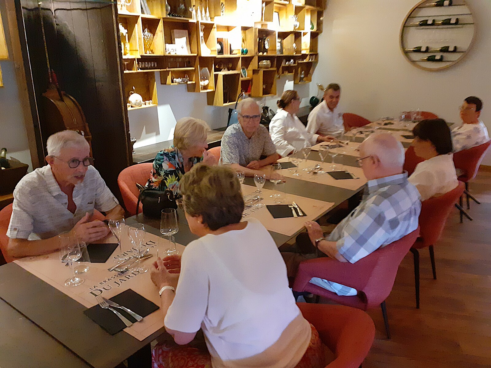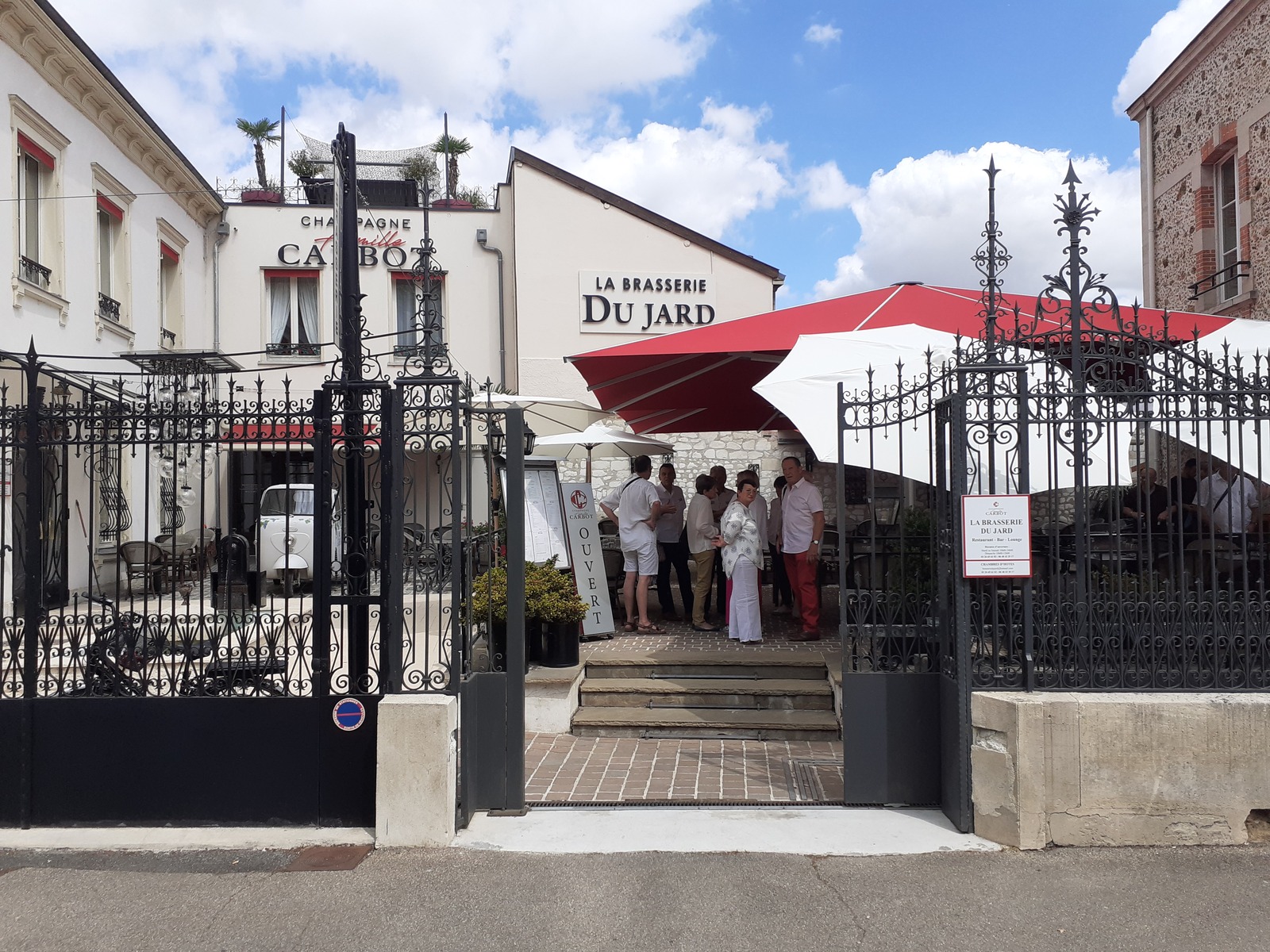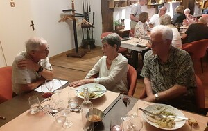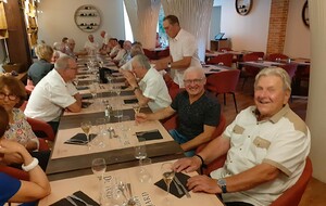 Cette année c'est " La Brasserie du Jard " qui a été retenue pour le repas. Au menu : salade de chèvre chaud ou carpaccio de tomates en entrée, onglet de boeuf ou aile de raie, en plat principal, tiramisu aux fraises ou mi-cuit au chocolat en dessert, champagne, vin blanc et rouge, café.