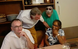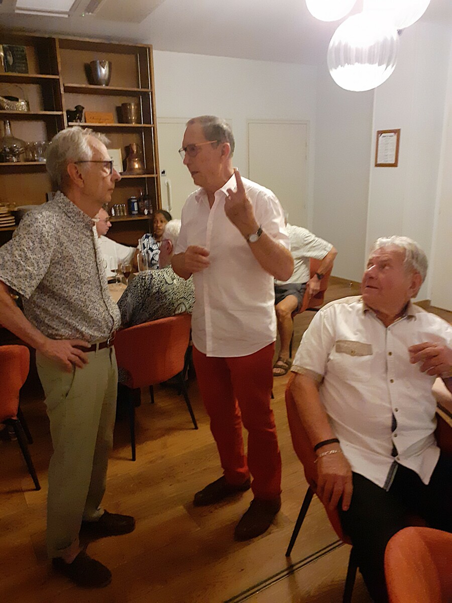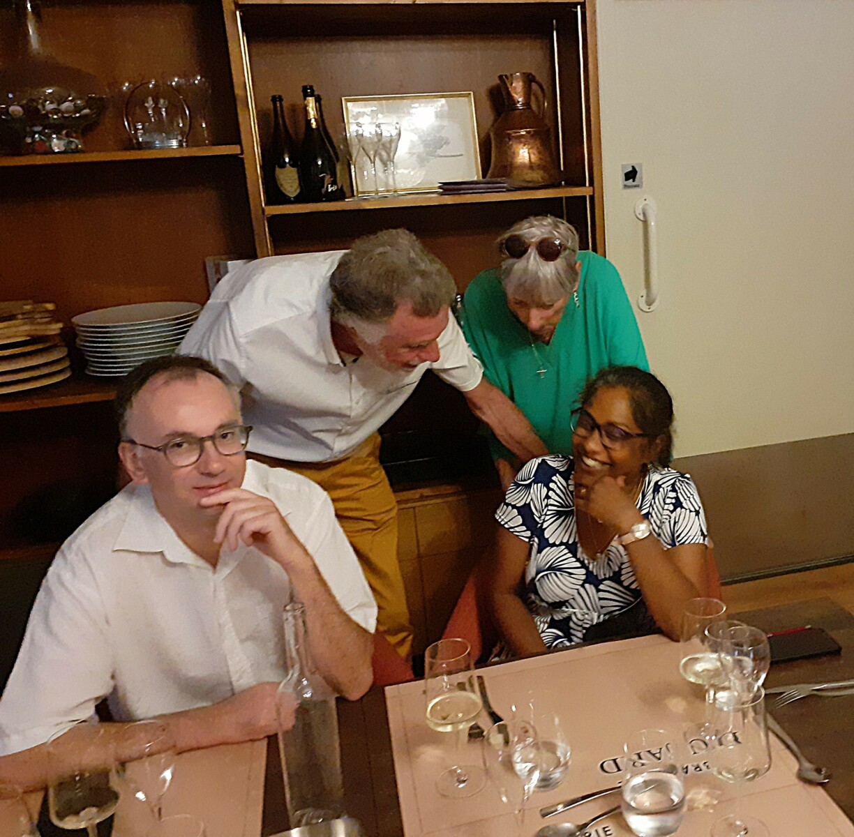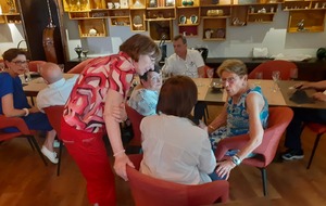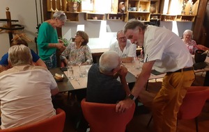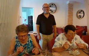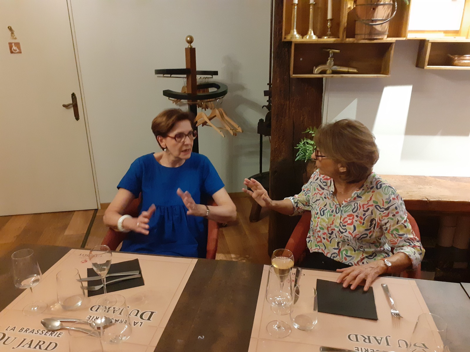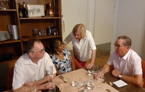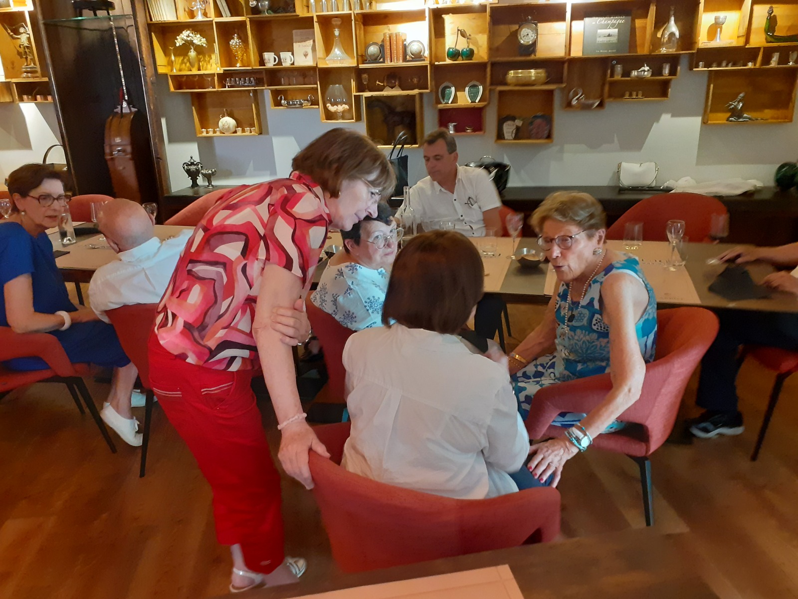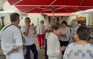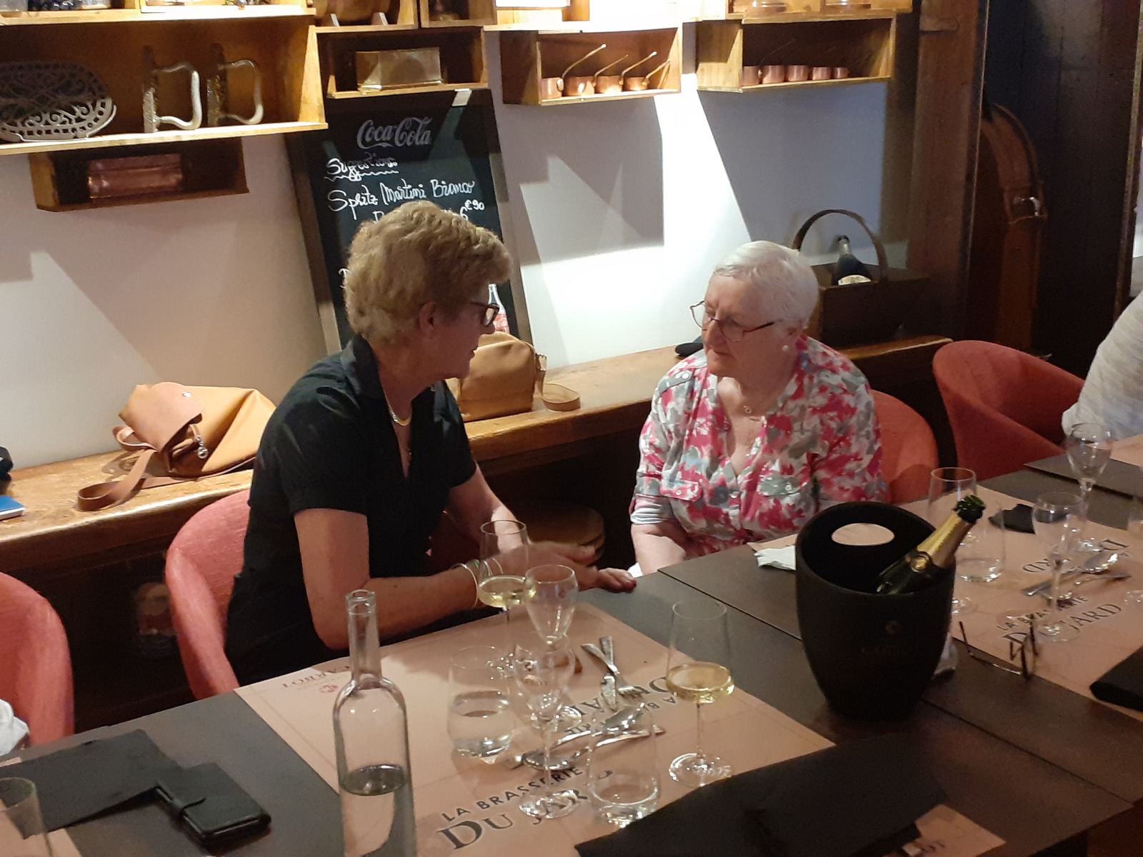 Cette année c'est " La Brasserie du Jard " qui a été retenue pour le repas. Au menu : salade de chèvre chaud ou carpaccio de tomates en entrée, onglet de boeuf ou aile de raie, en plat principal, tiramisu aux fraises ou mi-cuit au chocolat en dessert, champagne, vin blanc et rouge, café.